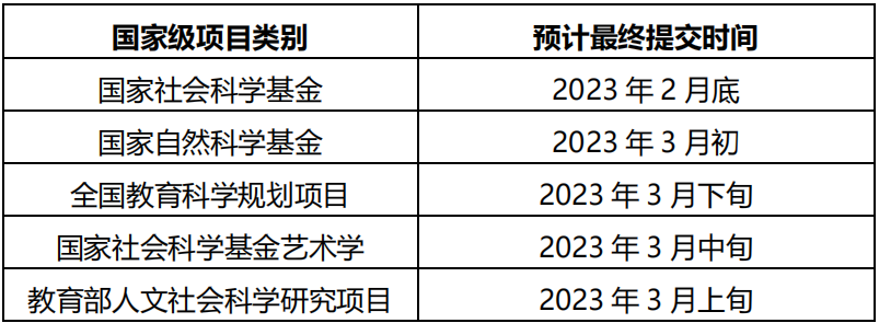 (4)申请书提交上报阶段(2023 年 2-3 月):预计各类国家项目申报最终