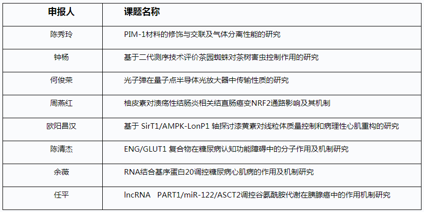 科研处受理各单位申报2021年度咸宁市自然科学基金与软科学项目共41项,经科研处形式与资格审查,按照咸宁市科技局要求和下达的申报指标,经校外专家和校学术委员会专家评审,根据评审结果拟推荐申报2021年咸宁市自然科学基金与软科学项目共8项。具体结果公示如下。如有异议,请在公示期内向科研处或校纪委、监察处反馈意见。